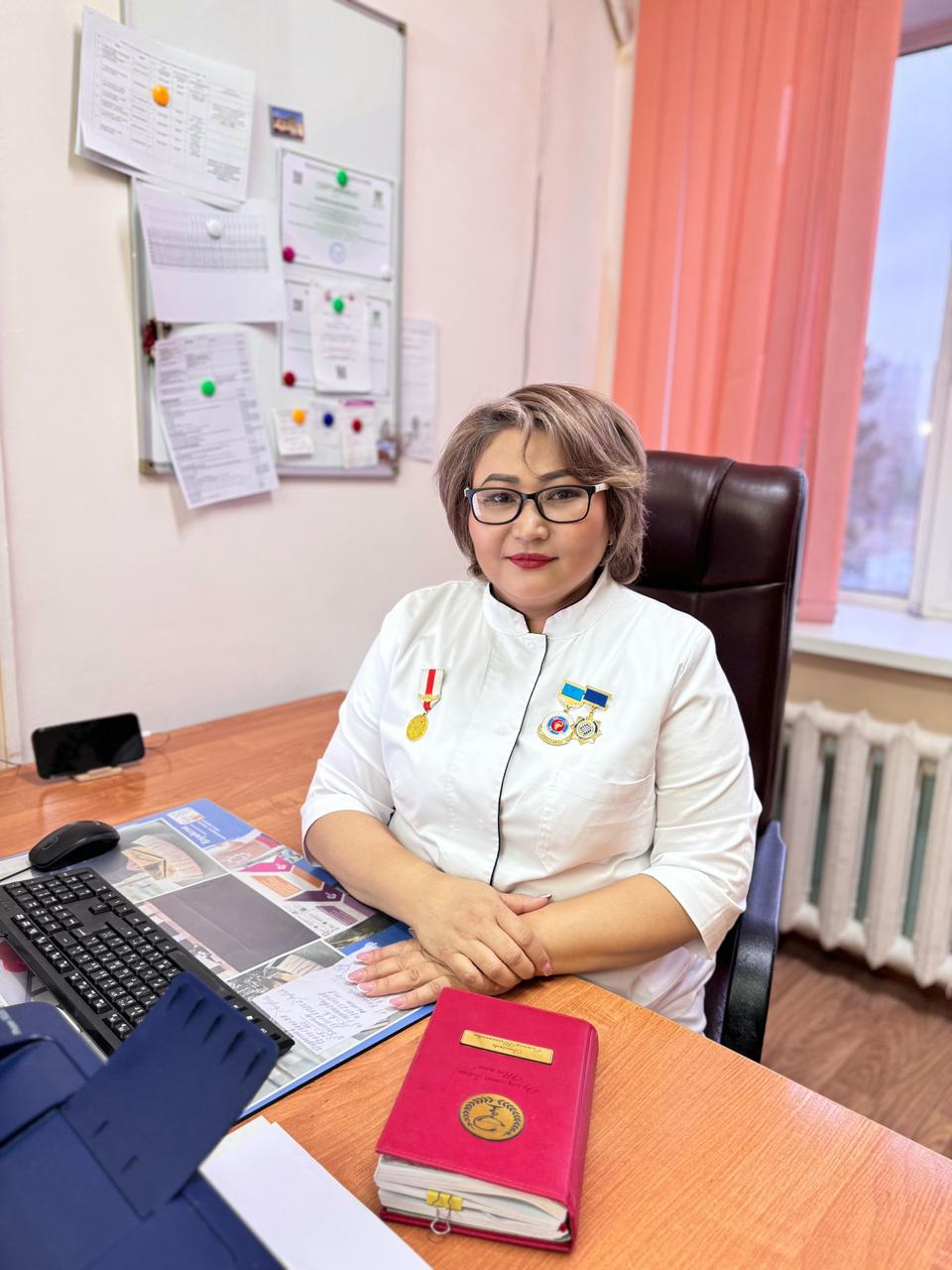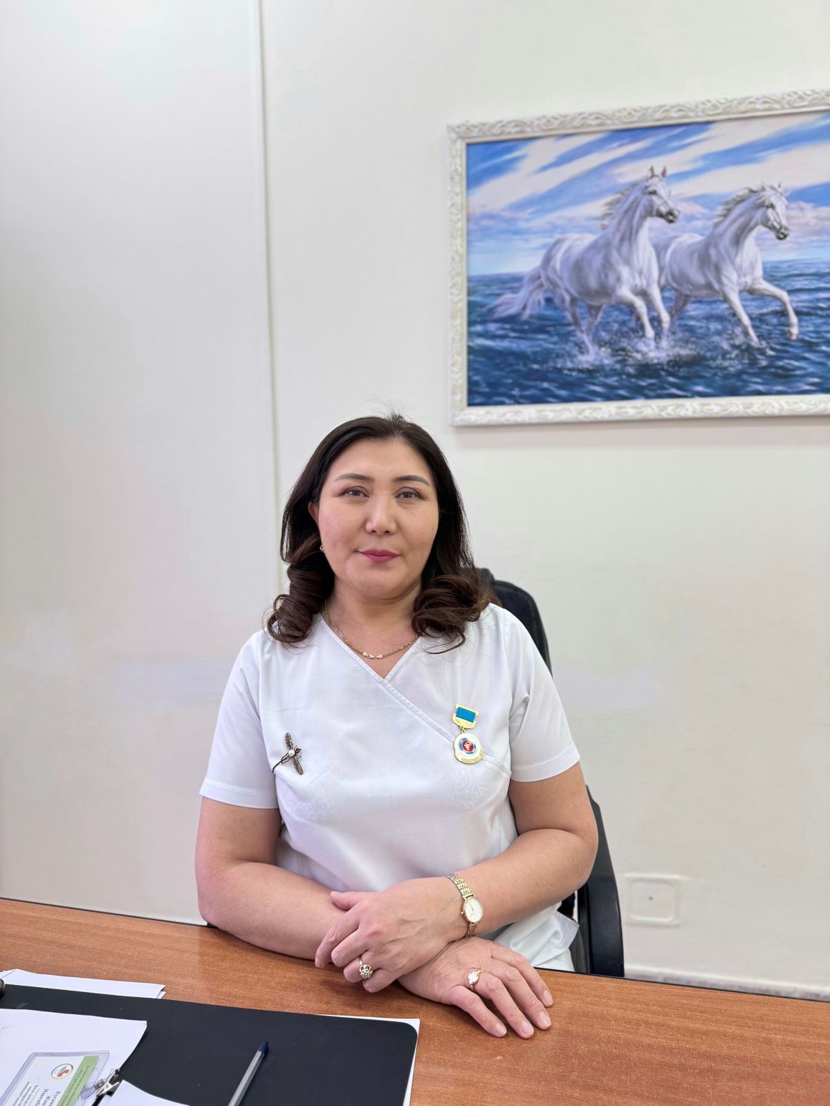 Кусаинова Жанар Ишембаевна - руководитель службы по родовспоможению и детству, врач-педиатр высшей квалификационной категории. Отличник здравоохранения.